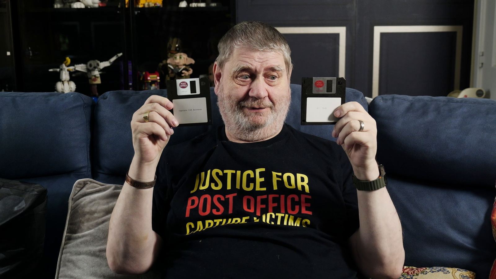 Mr Marston holds up computer disks which store the Capture software at the centre of the scandal