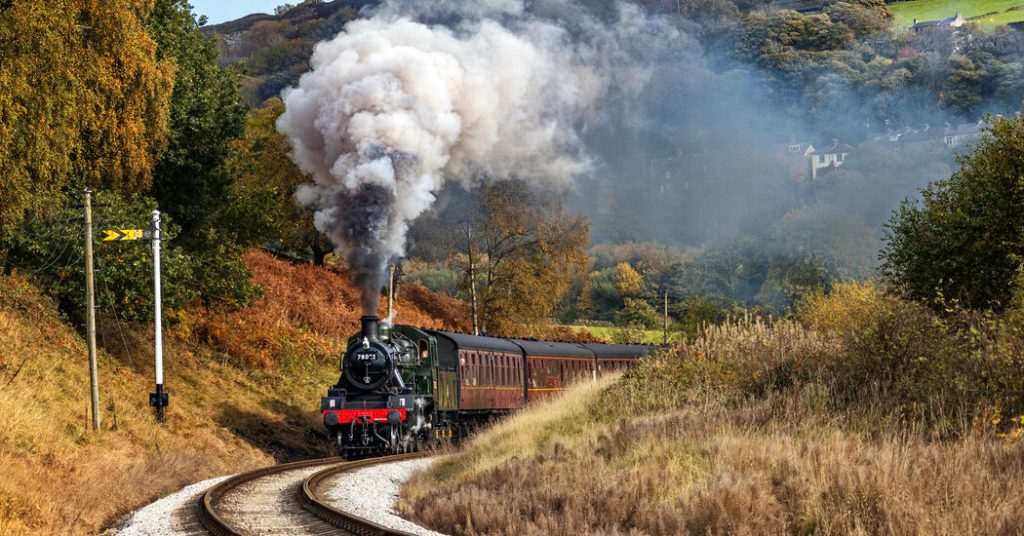 Trains pulling coaches — built between 1951 and 1963, with wooden details, expansive windows and upholstered seats — travel slowly on a five-mile single track through the moorland landscape where the novelists Charlotte and Emily Brontë grew up in the early 19th century. Haworth Station is a 10-minute walk from the Brontë Parsonage Museum, which was once their family home.