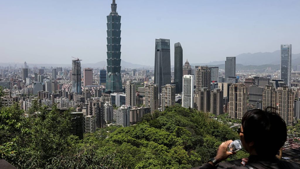 The city skyline is seen with the landmark Taipei 101 building from a lookout point on Elephant Mountain in Taipei on April 14, 2025. (Photo by I-Hwa Cheng / AFP) (Photo by I-HWA CHENG/AFP via Getty Images)