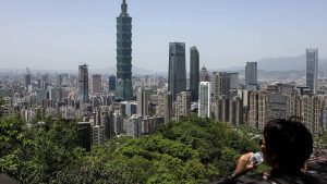 The city skyline is seen with the landmark Taipei 101 building from a lookout point on Elephant Mountain in Taipei on April 14, 2025. (Photo by I-Hwa Cheng / AFP) (Photo by I-HWA CHENG/AFP via Getty Images)