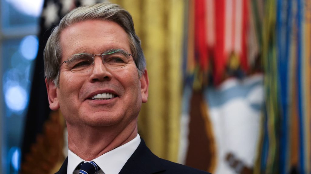 U.S. Treasury Secretary Scott Bessent looks on during an event with U.S. President Donald Trump and Apple CEO Tim Cook in the Oval Office of the White House on August 6, 2025 in Washington, DC.