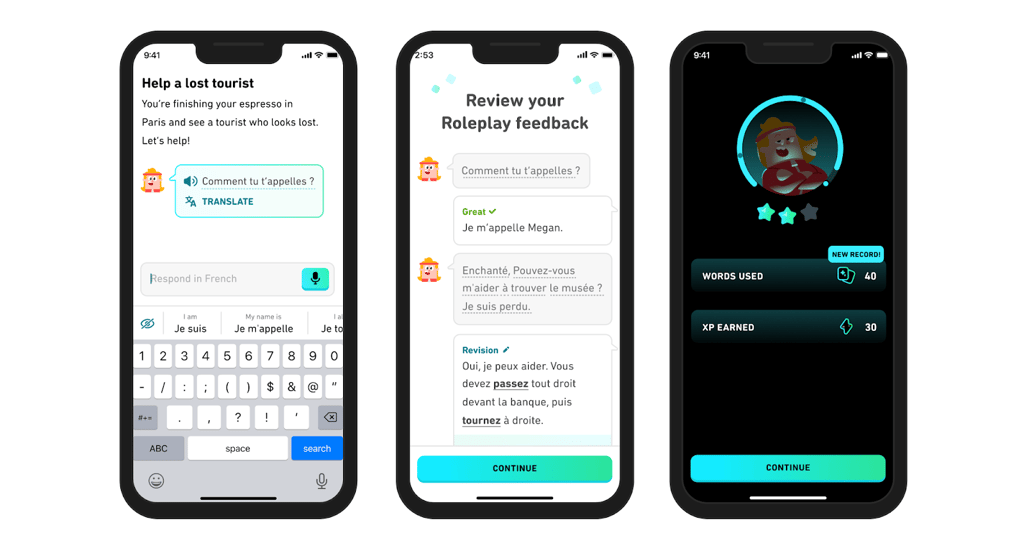 The Explain My Answer feature allows you to gain a deeper understanding of your responses with personalized feedback on your answers after exercises, whether you’re correct or incorrect. Meanwhile, with Roleplay, you can practice real-world conversations with Duolingo’s in-app characters. This feature will guide you through various scenarios, such as discussing future vacation plans, ordering coffee at a Parisian café, shopping for furniture, or inviting a friend for a hike.