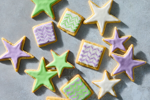 Using two kinds of sugar — granulated and powdered — makes shortbread crunchy and tender. White granulated sugar not only sweetens, it also provides a light snap because it helps create air pockets in butter when the two are beaten together, while powdered sugar lends a melt-in-your-mouth crumble. Here, only a small proportion of powdered sugar is used because the shortbread still needs structure to hold up to decorating.