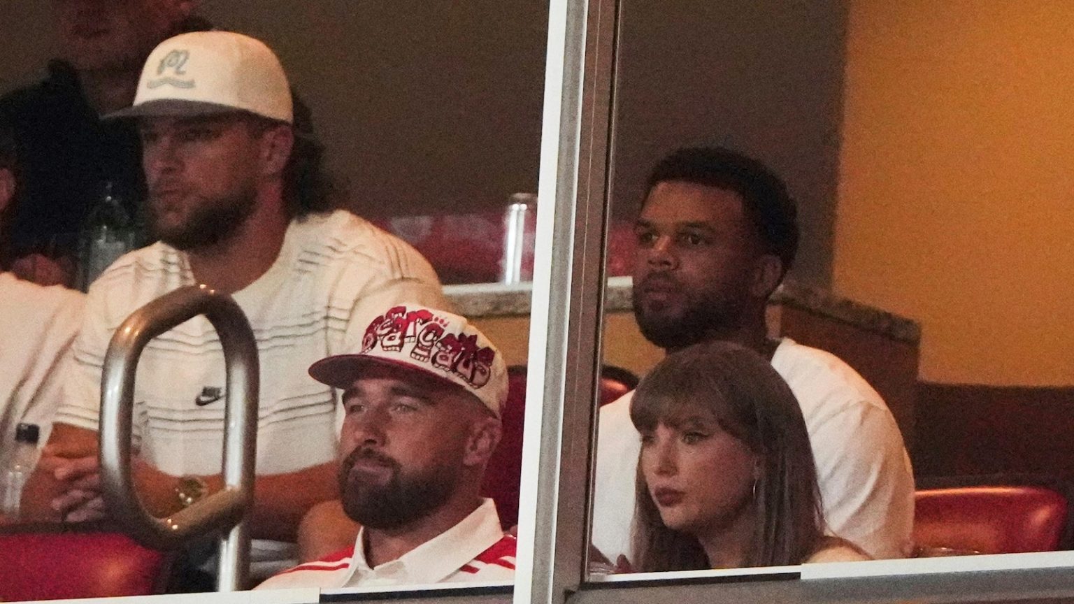 Kelce, who played football for the Bearcats, spent plenty of time on the field during warm-ups in a red-and-white striped sweater before retreating to a suite for the game. He was joined there by Swift and several others shortly before kickoff.