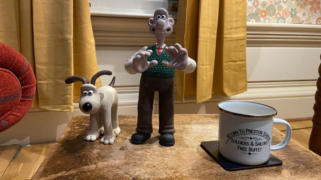 The living room was actually based on his grandma’s house, which he describes as a cosy 1960s home. And as he sits in the chair with his cup of tea, he jokes that he’s now turned into Wallace.